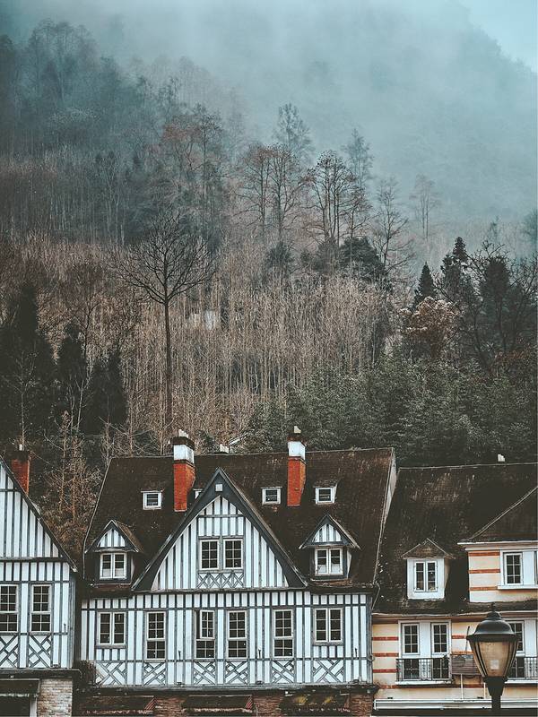 白鹿镇位于成都附近的彭州市,“大表姐”刘雯就于此地取过景,隐藏在大山间的白鹿镇随处充斥着满满的复古欧式风情。