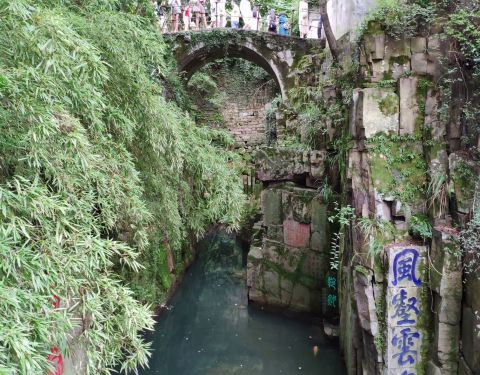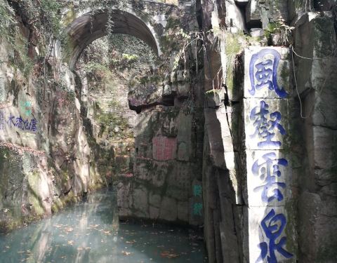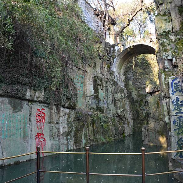 是一处春秋时期留下的风景名胜地,因埋藏了三千把宝剑而得名,剑池池水碧绿深邃,周边的石壁上都是历...据说这里有近三千年的历史,是一处春秋时期留下的风景名胜地,因埋藏了三千把宝剑而得名,剑池池水碧绿深邃,周边的石壁上都是历代留下的摩崖石刻。