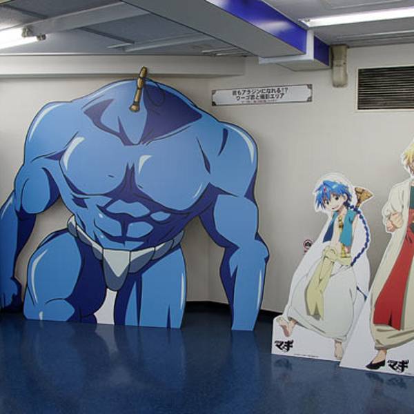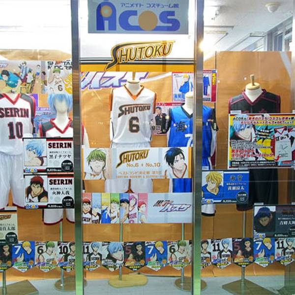 来到了animate秋叶原店,一层的cosplay周边区,原来布满了货架的《轻音》《凉宫》cosplay服装全都不见了,现在主打的内容是《黑子的篮球》,墙上挂着的也都是《magi》《银魂》等,看来在animate,的确是女性向内...