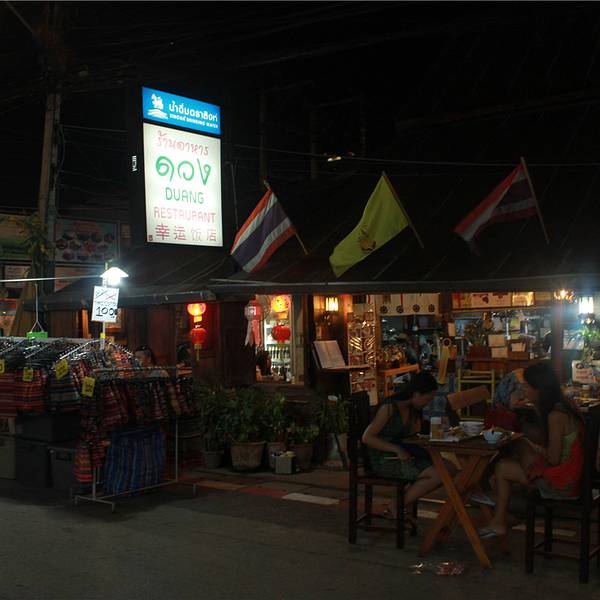 Duang Restaurant(幸运饭店)就在拜县车站对面,地理位置优越,十分容易找。中规中矩的泰式菜馆,不过因为在泰国北部,口味较曼谷等地更为辛辣厚重,特色菜是芒果糯米饭,软糯香甜,入口即化。