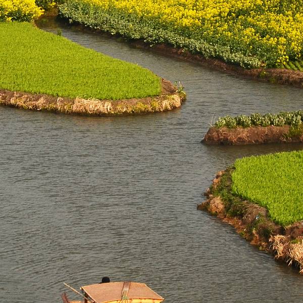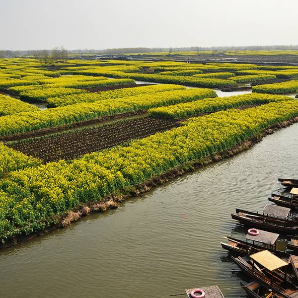 750年前,这里的村民从水下取土,一方一方使其堆积成垛,酷似那新燕衔泥筑巢,是靠辛勤和无畏筑出一条条垛田,千垛与沟河交错其中,垛格环水,景色怡人。远看油菜地,平畴无际;近观其详,每条垛田都浮漾于水中,活像是那硕大的水面盆景,曲折蜿行于垛地的沟恤纵横间。