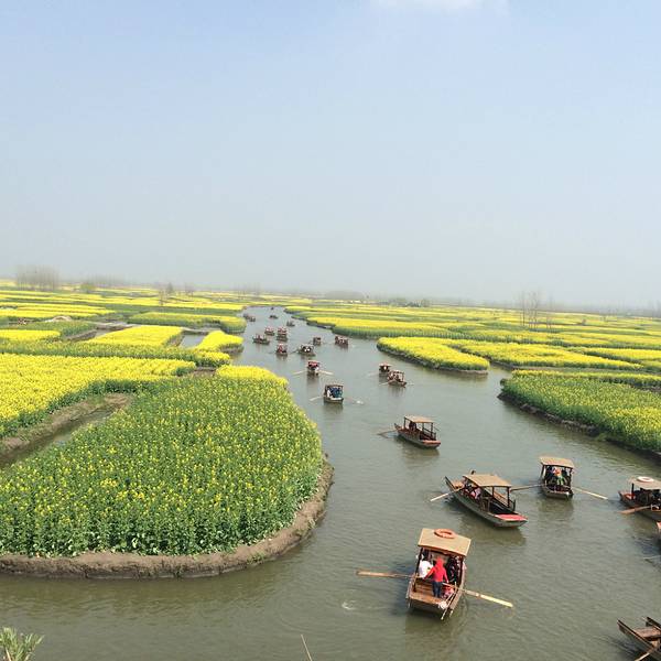 千垛景区被称为:河有万湾多碧水,田无一垛不黄花。看油菜花最好的时节数清明节啦,花期大约一个月,门票是100元/人含船票,花期正盛时想必到时候也是人满为患的吧。