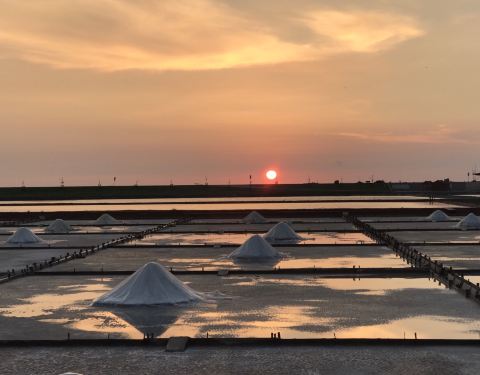 还能在这里品尝到用盐制成的特色美食。还有属于自己生日的盐秋冬起,是南台湾传统晒盐的季节,位于台南北门区滨海的“井仔脚瓦盘盐田”,迄今还保存了传统晒盐产业的的示范操作活动。盐田里堆起一座座的雪白色金字塔,与滨海的夕阳相互辉映,正迎接来到北门舄湖度冬的黑腹...秋冬起,是南台湾传统晒盐的季节,位于台南北门区滨海的“井仔脚瓦盘盐田”,迄今还保存了传统晒盐产业的的示范操作活动。盐田里堆起一座座的雪白色金字塔,与滨海的夕阳相互辉映,正迎接来到北门舄湖度冬的黑腹燕鸥。“井仔脚瓦盘盐田”创于1818年,是北门的第一座盐田,也是台湾现存最古老的瓦盘盐田遗址,原为清领时期的濑东盐场,至今有180多年历史。 展开