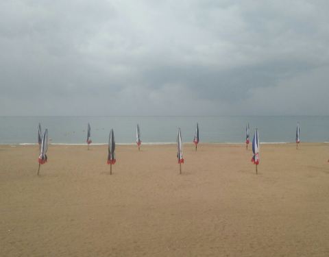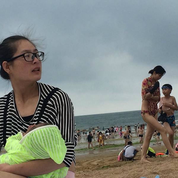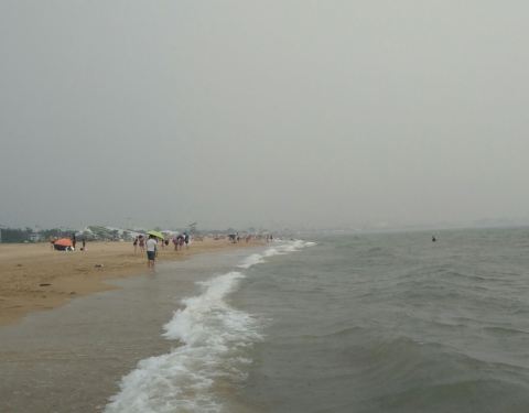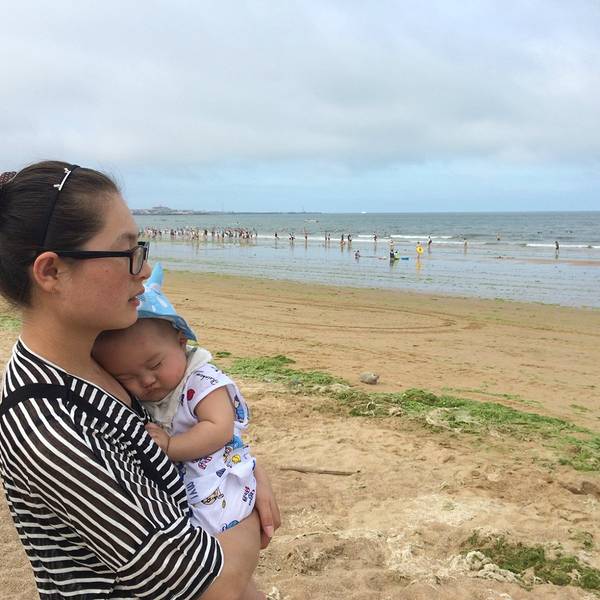 海边的沙子非常的细腻,光脚前行也没有不舒服的感觉,或许是天气的原因,海边的人不算太多,把准备好的床单铺在沙滩上,儿子在上面睡的呼呼地,这天的天气确实是不算太好,游玩有1小时左右,儿子醒后,天气骤变,有一种“山雨欲来风满楼”于是便草草收拾好行囊回到宾馆。