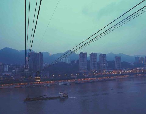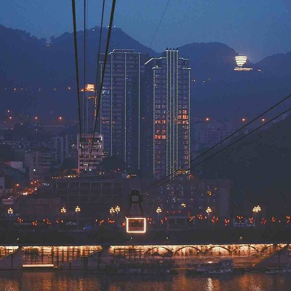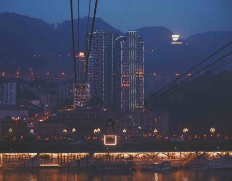 这个桥距离长江索道比较近,这边的最佳观景点就是在缆车上。那就顺便来看看重庆的夜景吧