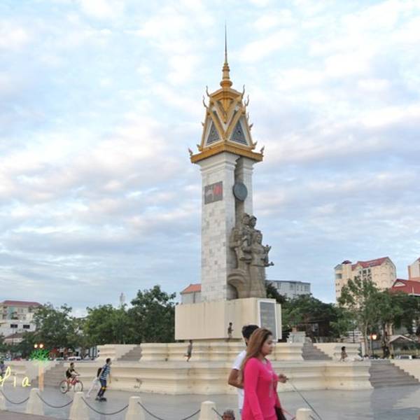 柬越友谊塔,位于独立纪念碑附近,是1979年越南占领柬埔寨推翻红色高棉政权后建造的。纪念越南军队将柬埔寨从红色高棉手中拯救出来。