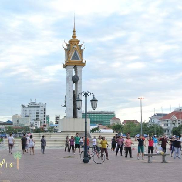 广场上有很多队人在跳着热辣广场舞,同行的大妈看见熟悉的舞步都兴奋起来从王宫那里大概走10分钟就到Cambodia-Vietnam Friendship Monument柬越友谊塔
