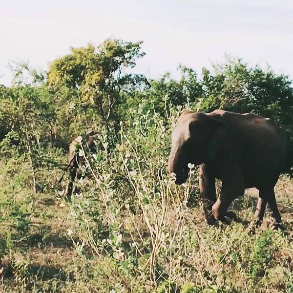 此时此刻 大象宝宝已经开始出来觅食了野生动物公园 斯里兰卡有不少 最为出门的是雅拉公园和乌达瓦拉维国家公园