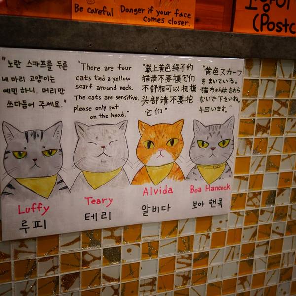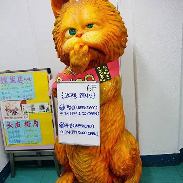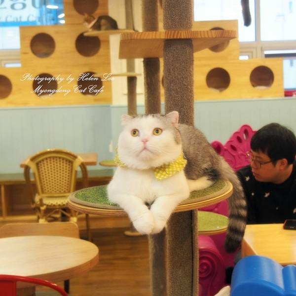 这家位于明洞的猫咖啡馆,位于六楼,位置比较难找,只要看到楼下的猫人,基本问一下便可以找到电梯入口