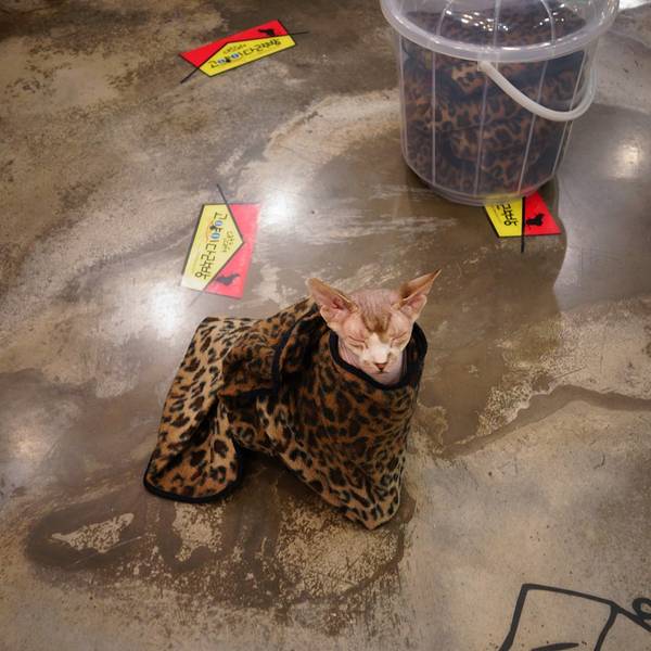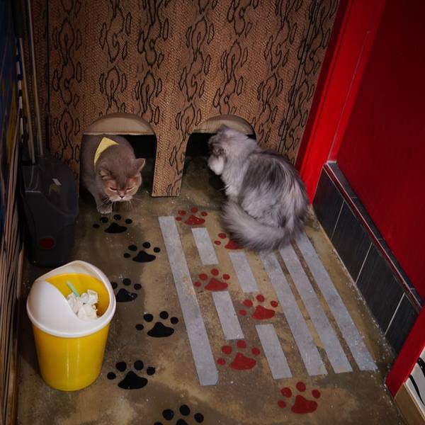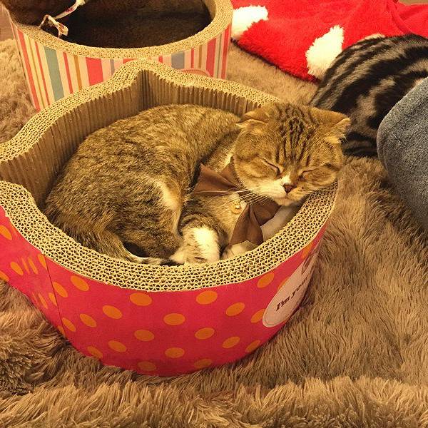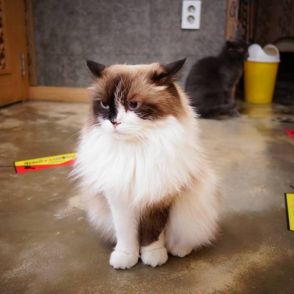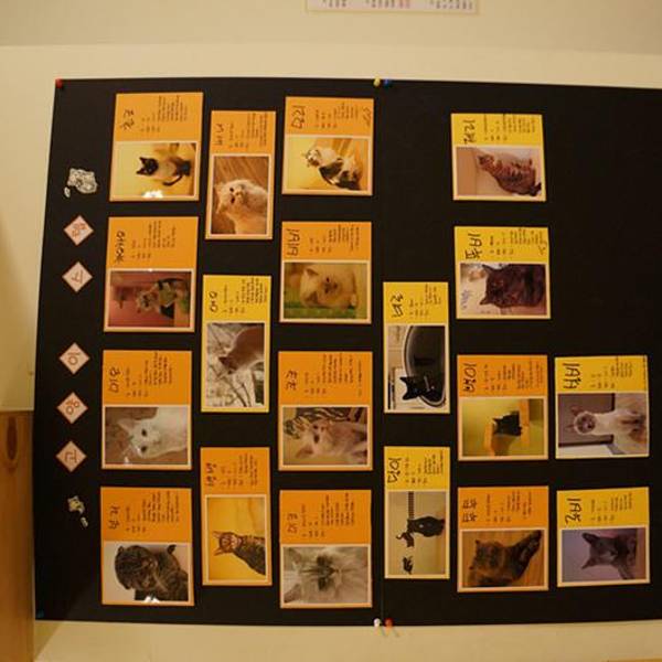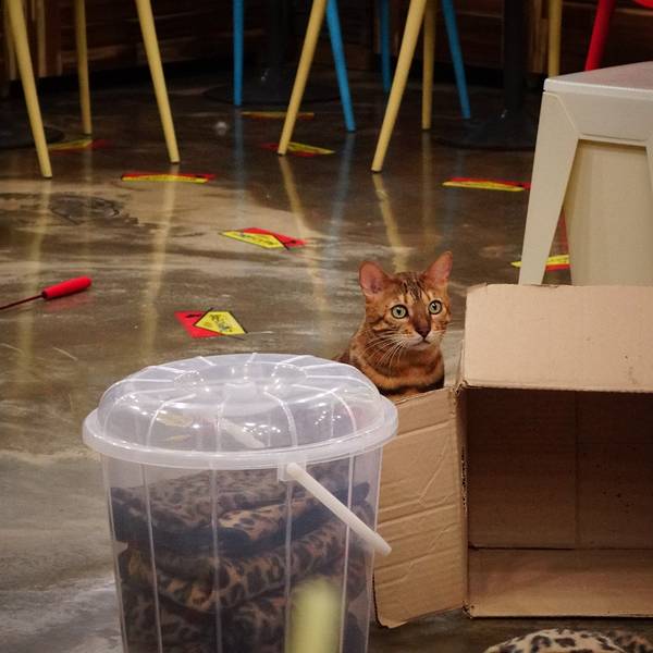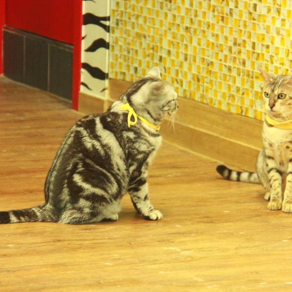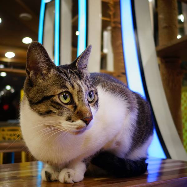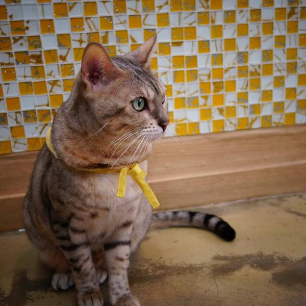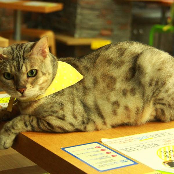 需要特别注意的是,佩戴蓝色围巾的猫咪为状态不好或是情绪不稳定,只能看不能摸哦!咪咪,你在看什么呢