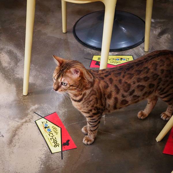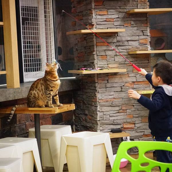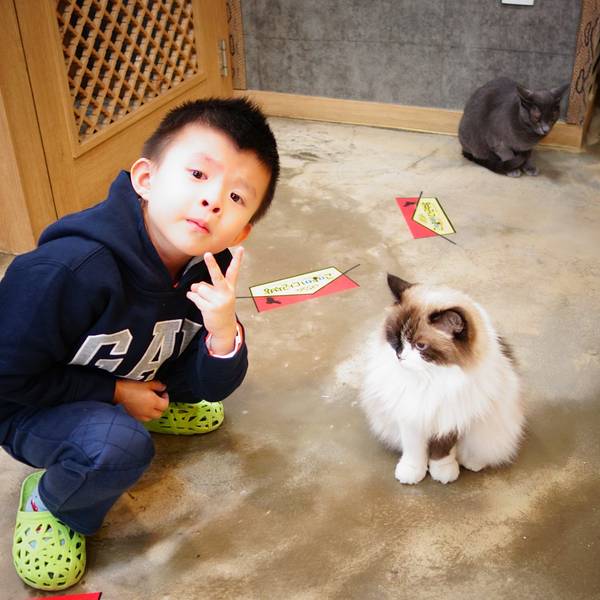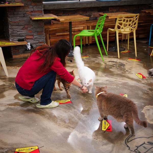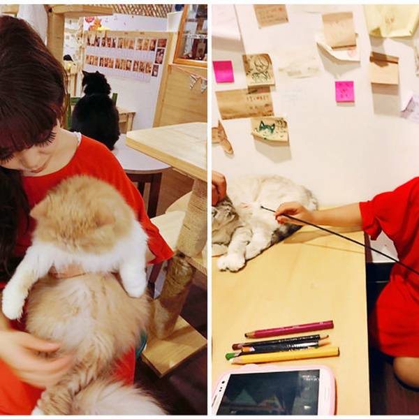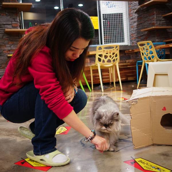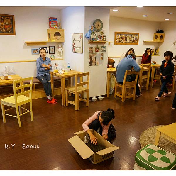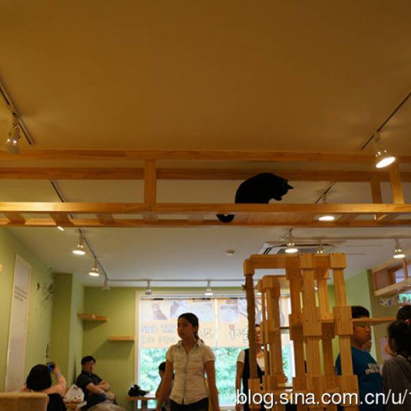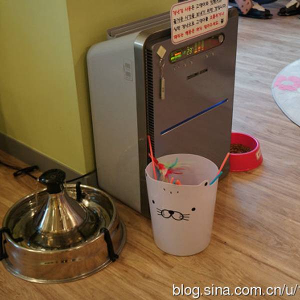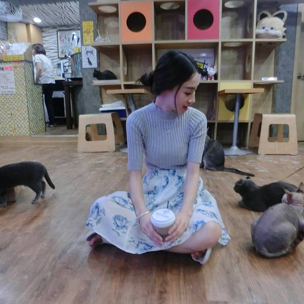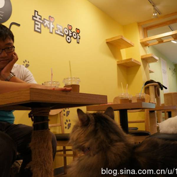 8000韩币的入场费并附送一杯饮品,就可以坐在这里玩各种猫。这是一家可以和30只萌猫接触的咖啡厅