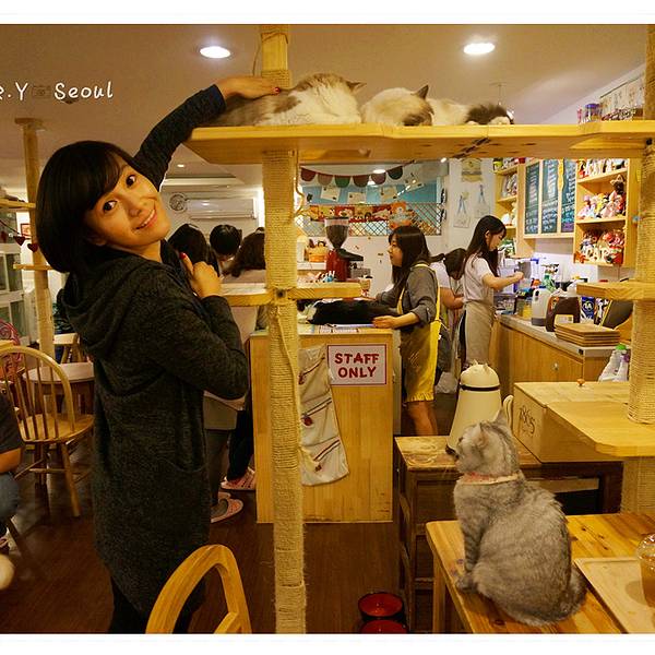 之前逛明洞的时候,经常看到有大型猫咪在街头招揽生意,因为自己特别爱猫猫的缘故,这次终于如愿以偿来到猫咪咖啡馆啦!