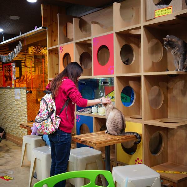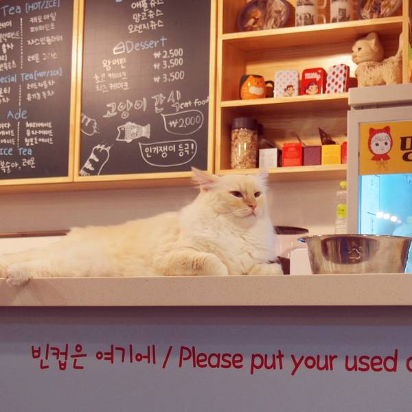 位于首尔明洞二街的这家猫咪咖啡馆,是爱猫人士必去的咖啡店。店里有许多可爱的猫咪,萌萌又高冷的喵星人。