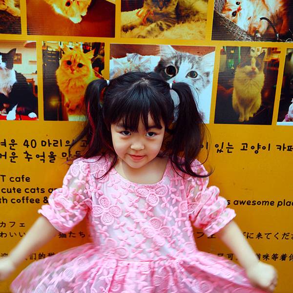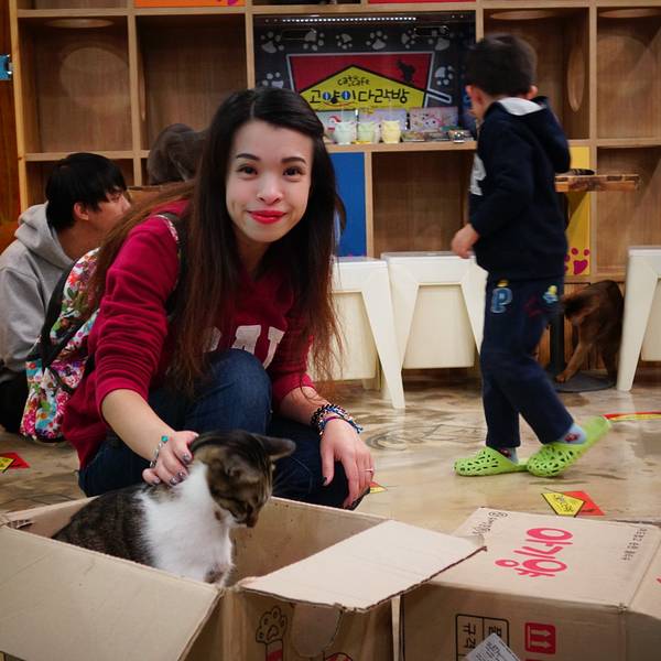 打算再去明洞转一圈,这时在街上碰见了此行最意外、也是玩得最开心的地方——猫咪咖啡馆。