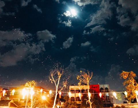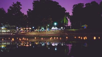 坐在湄平河的长尾船上慢慢悠悠的行驶,河边两岸的灯火也逐渐点亮,飒是好看。已经开始有当地的民众在小部分的开始放水灯了,我们也开始一个个的许下自己的心愿,并期盼这些水灯带着我们的期望得到神的祝福。(虽然我的心愿刚下河就翻船了。。。是真的很难实现吗!!)。湄平河边水灯一盏盏的流过,天灯也在缓缓升起,其实一点也不比会场看到的差。想起昨天晚上自己亲手做的水灯还没放,我和伙伴也是加紧了步伐,赶回家拿水灯,想在湄平河放上心愿。河边的夜市也是热闹极了,两旁车水马龙,摆满了各色各样的小吃烧烤肉串海鲜等等,我们还是没能抵挡得住诱惑,停下来买了些烧烤,不得不说,比塔佩门附近的好吃太多。等我们把水灯带回湄平河流放之后,人群也渐渐减少,一看时间已经是凌晨了。虽然意犹未尽,但这趟体验真的是人生宝贵的财富了,在当下,我真的已经很满足了。