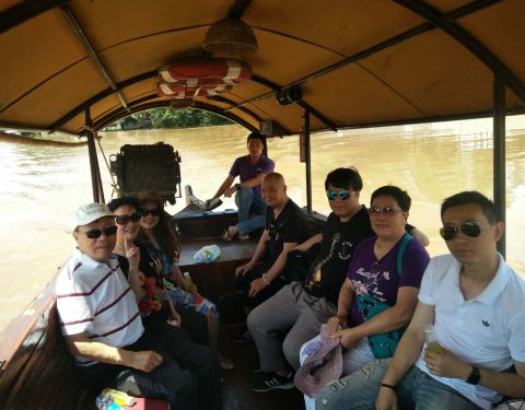 我们是一大家子去玩的,船游湄平河感觉还不错,除了天气热了点。可以在小船上看一下两岸风景,拍拍照,感觉河水颜色和黄浦江差不多。