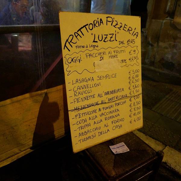 ————————❤罗马:LUZZI❤———————— Luzzi 推荐指数:★★★★☆ 地址: Via Di San Giovanni In Laterano 88, 00184 Rome, Italy 营业时间:12:00—0:00 (每周三休息) 特意跑来找大名鼎鼎的LUZZI。晚上十点多还座无虚席,可见人气之高啊~