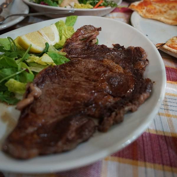 慕名而来的网红店。没想到如此惊艳。店铺又小又拥挤,幸好我们来早点,否则就要等位了。 大力推荐的一家店,价格非常平民味道又好吃。极力推荐牛扒,这里不会配黑椒汁或其他汁,原汁原味,牛味十足,味道恰到好处。实在是惊艳到了!!披萨还行吧。海鲜意面,刚开始吃不错,但越吃越觉得好吃。两份点起。实在太好吃了,后来又增点了一份。提拉米苏,也非常美味~~