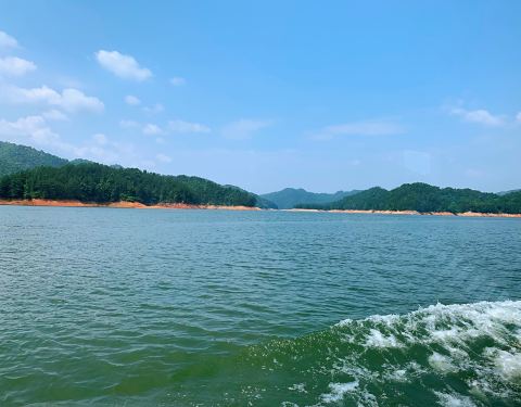 这里的景色非常的优美,湖的面积非常的大,我们来到这里一一起登上了快艇,游览了整个阳明湖,然后又...在江西的上犹县有一处阳明湖,这里的景色非常的优美,湖的面积非常的大,我们来到这里一一起登上了快艇,游览了整个阳明湖,然后又到他的树木林去参观这里的。