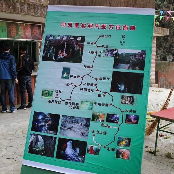 司岗里溶洞它原是一条古老的地下河流,由于多年地质演变,地层变迁,河水改道而成。这段干涸了的地下河道,空豁幽深,长年累月,经地面雨水的渗透浸蚀,石灰岩逐渐溶解,经沉淀凝聚而形成众多溶洞厅堂。厅内石笋、石柱千姿百态,景观组合丰富,特别是有一石柱高约20米,根粗1.6米,顶天立地,石柱上小下大,其上石花遍布,像一座座石塔,洁白晶莹,令人叹为观止。