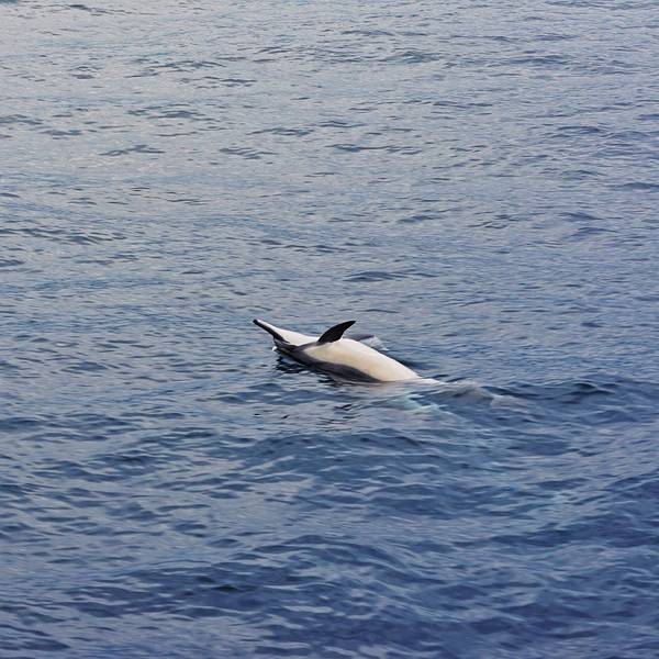 如果容易晕船,或者很怕冷的话最好选择一层。船渐离港,还没有在海洋公园以外的地方见到过海豚呢。天气也没有完全放弃我们,阳光会时不时穿透下来洒在海面。宛如就位的聚光灯,等候着海豚的show time。船开到特定的海域,船速渐缓,调皮的海豚很喜欢追逐着船只,尤其喜欢在船首乘波逐浪跳跃嬉戏。