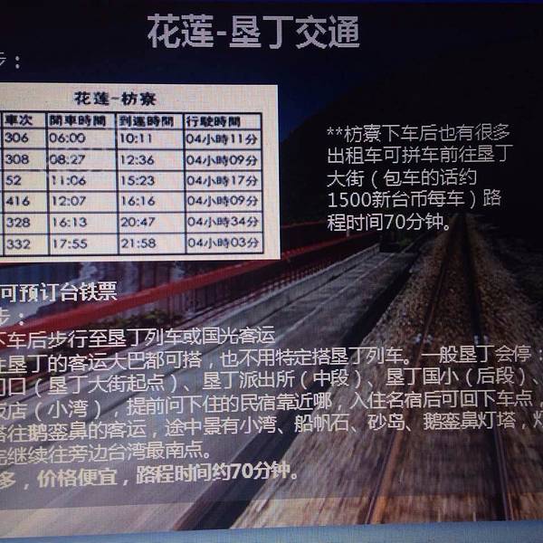 交通给你们贴出来啦!因为庙口红茶离小公馆实在太近啦,今天吃完早餐就要准备去花莲火车站出发前往垦丁啦因为庙口红茶离小公馆实在太近啦,今天吃完早餐就要准备去花莲火车站出发前往垦丁啦!交通给你们贴出来啦!怎么抢到票的我在05目录有写。成片成片绿油油的田野。好良心的便当,坐台铁当然要尝尝。本来还打算在池...因为庙口红茶离小公馆实在太近啦,今天吃完早餐就要准备去花莲火车站出发前往垦丁啦!交通给你们贴出来啦!怎么抢到票的我在05目录有写。成片成片绿油油的田野。好良心的便当,坐台铁当然要尝尝。本来还打算在池上能买到池上便当。但是在整修。鹿野!热气球嘉年华就是在这里啦~暑假打算来湾湾的朋友在官网查好时间,想看的就不要错过啦! 展开