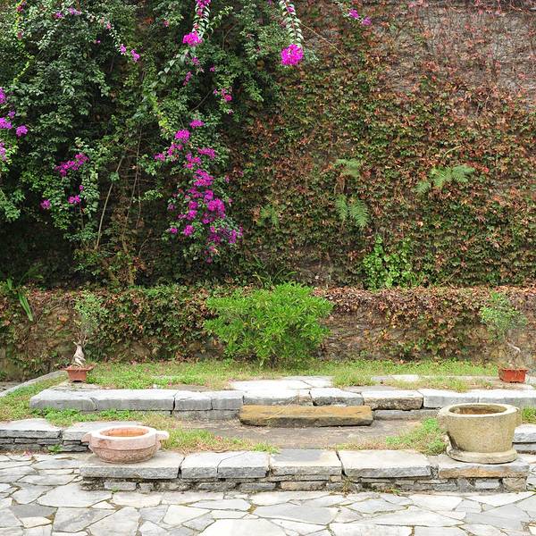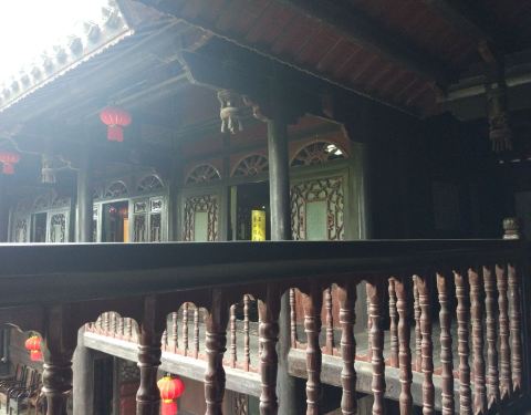 墙上镌刻的 “鱼跃鸢飞”,书法精湛楼房中的石柱、石凳、石缸、石壁,雕龙画凤,刻制精细;墙上镌刻的 “鱼跃鸢飞”,书法精湛;花鸟虫鱼,栩栩如生。