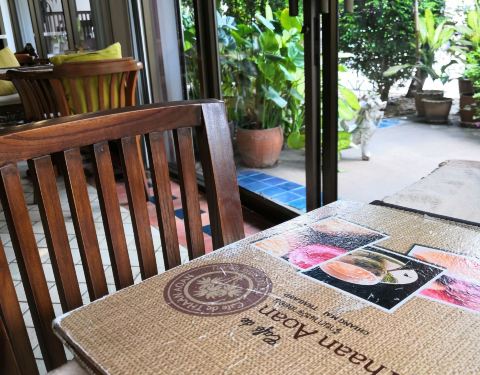 餐厅在清迈古城内,有个独立的小院子,院子里有露天座位,舒适惬意,屋内是美式咖啡店的装潢,非常简约干净...
