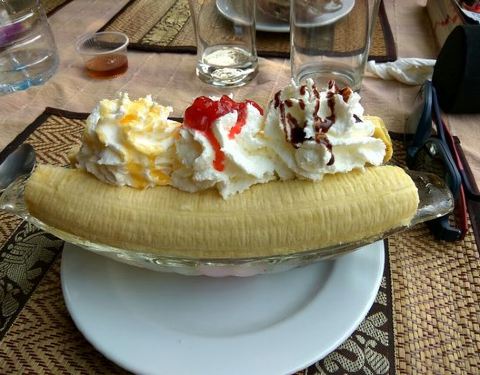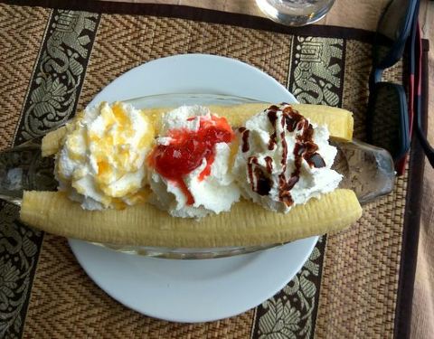 在古城逛寺庙来的,去了帕辛寺、契迪龙寺(大佛塔)。走累了想找个地方歇脚,一眼看到了这里,一家兼营泰国菜的咖啡屋。不到饭点只要了咖啡和茶。后来知道是家网红店,环境不错吸引了不少欧洲客,邻桌的一对欧洲情侣还相互在对方的盆子里舀食狂秀恩爱呢。