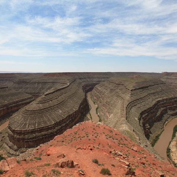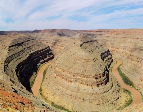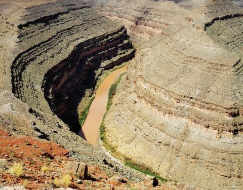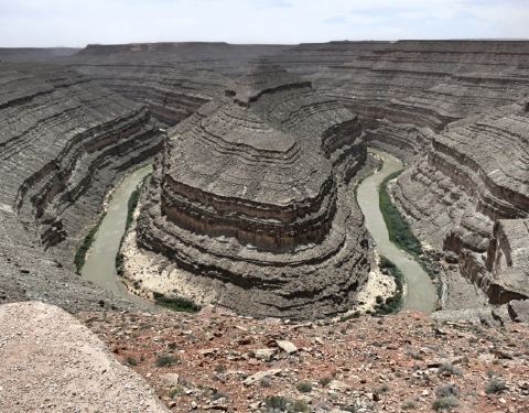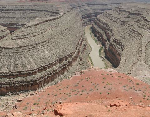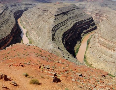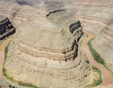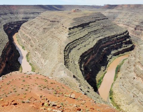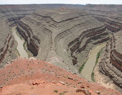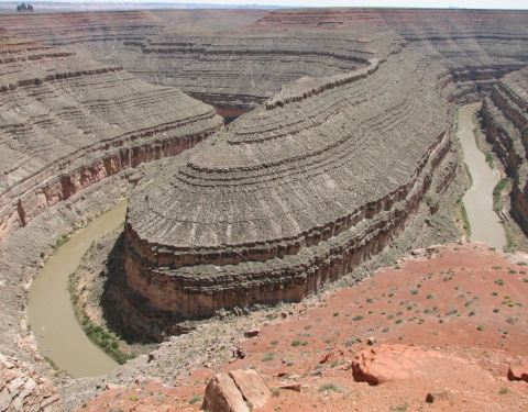 在鹅颈谷一英里的范围内圣胡安河能蜿蜒前进5英里,连续转了三个180度的大弯。
