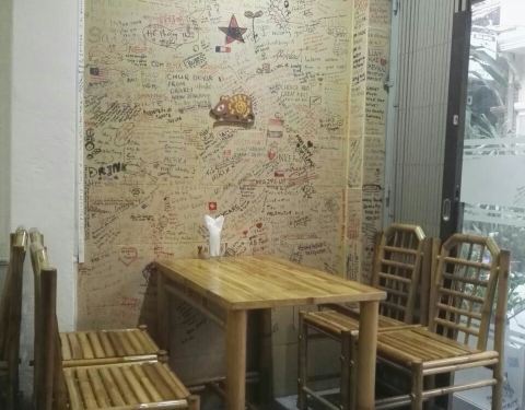 似乎就是为了背包客而存在的一家店,整个店的风格也都是满满旅行者留下的印记。在范五老街边青市场一带也是很火的一家店,晚上的时候外面街边都做了不少人,老外(西洋鬼)很多。 最终没选择在这家吃,主要目测他...似乎就是为了背包客而存在的一家店,整个店的风格也都是满满旅行者留下的印记。在范五老街边青市场一带也是很火的一家店,晚上的时候外面街边都做了不少人,老外(西洋鬼)很多。 最终没选择在这家吃,主要目测他家更适合三五成群来吃,一个人有点小尴尬啊。而且感觉他家菜更接进于泰国菜,咖啡也是马来式的。个人更喜欢越南土土的coffee black