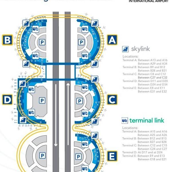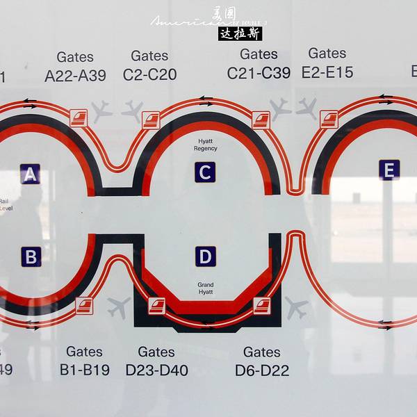 - 达拉斯沃思堡机场很大,可以通过机场Skylink在不同航站楼穿行,