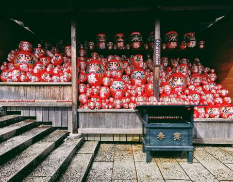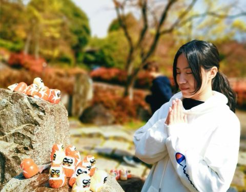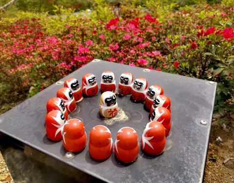 随手拍来都是五颜六色活泼清新的风景画。进入寺院之后不远的地方,有一个许愿的类似花坛的地方胜伟寺在大阪府箕面市,我们住的酒店在心斋桥附近,从酒店到这里大概需要两个小时的时间。 路途虽然有些遥远,不过萌萌的达摩会让人不虚此行。如果用一个词来形容我对日本寺庙的印象的话:活泼!日本的寺庙大都很...胜伟寺在大阪府箕面市,我们住的酒店在心斋桥附近,从酒店到这里大概需要两个小时的时间。 路途虽然有些遥远,不过萌萌的达摩会让人不虚此行。如果用一个词来形容我对日本寺庙的印象的话:活泼!日本的寺庙大都很漂亮,花草树木,庭院搭建,都很考究。随手拍来都是五颜六色活泼清新的风景画。小达摩‘嬉戏’在寺院的每个角落,石头上,瓦片间,瀑布下,无处不在。这些达摩都是祈求者们带着美好心愿自由放置的。如果时间足够,一路走下来,会发现‘达摩王国’真的非常有趣。也同时想要感慨来祈求胜利之运的人们真的好可爱,一个达摩解决的问题,偏偏要和他人的小达摩摆在一起互动,开会喝茶看山看水,自在的很~在本堂对面可以买到各种size的达摩,价格还算合理。买来之后是没有眼睛的,许愿时先为达摩画上一只眼睛,等到愿望成真时再画上另一只,然后把达摩带回寺中摆放~很有意思。进入寺院之后不远的地方,有一个许愿的类似花坛的地方。许愿时要从入口一圈圈走进去,走到圆心处许愿,然后再一圈圈走出来,出口同入口。许愿后天气突然放晴,心情大好!! 展开