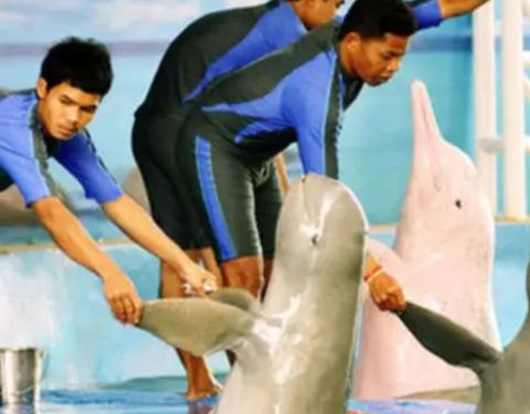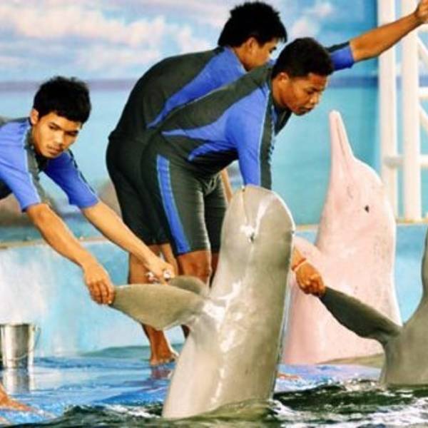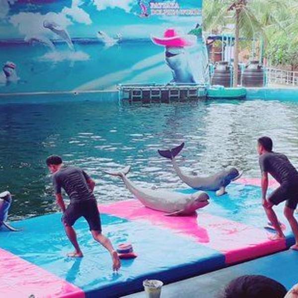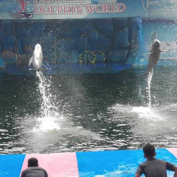 芭提雅海豚世界位于芭提雅市中心,所有的海豚表演如出一辙,但是因为这里有世界上稀有的粉红海豚,所...芭提雅海豚世界位于芭提雅市中心,所有的海豚表演如出一辙,但是因为这里有世界上稀有的粉红海豚,所以值得一来。乐园每天都有固定的表演时段,展示粉红海豚并进行表演。