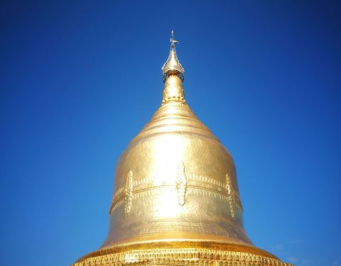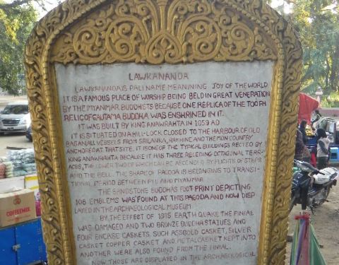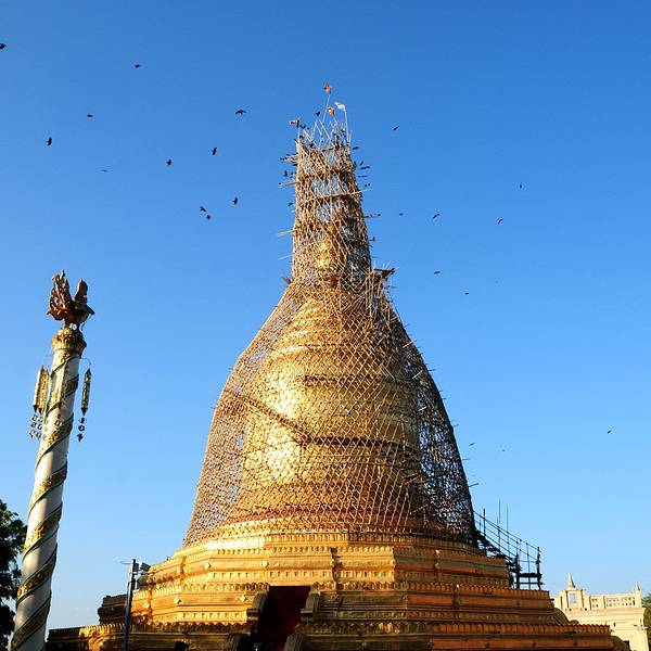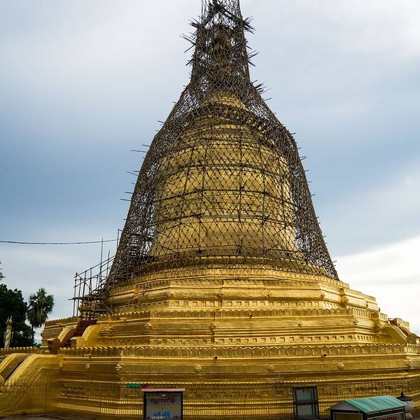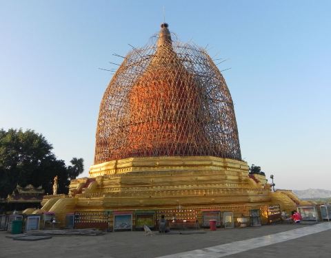 佛塔通体都刷着金漆,类似于舍利塔的钟形,是日常顶礼膜拜的主要地点。是佛舍利四影骨的埋葬地之一是佛舍利四影骨的埋葬地之一。位于蒲甘的重要交通码头旁。佛塔通体都刷着金漆,类似于舍利塔的钟形,是日常顶礼膜拜的主要地点。正好位于伊洛瓦底江的一个拐角处,可以看到整个伊洛瓦底江河湾。
