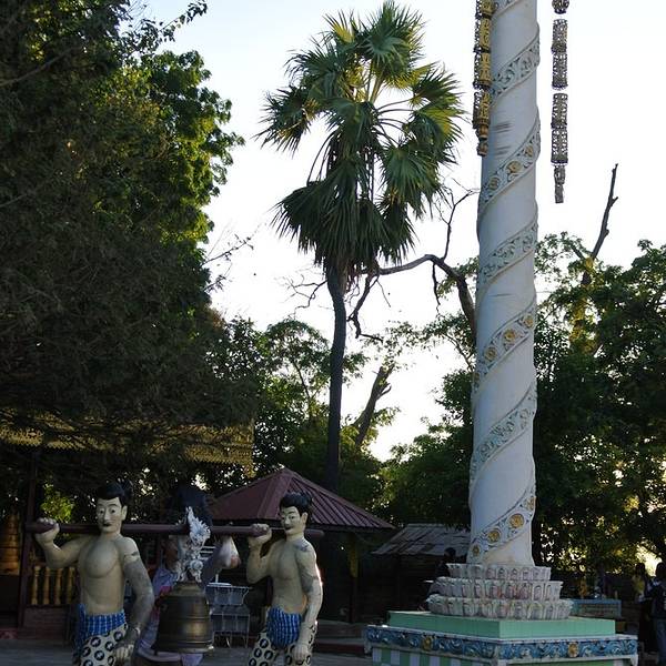 门口以及景点内,都有些商贩在售卖东西,特别是沙画,蛮漂亮的此是一座位于伊洛瓦底江江边的寺庙,因此周边的风景很美,令人感觉很清新.门口以及景点内,都有些商贩在售卖东西,特别是沙画,蛮漂亮的!