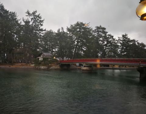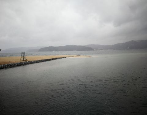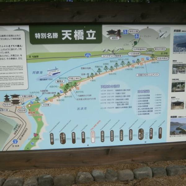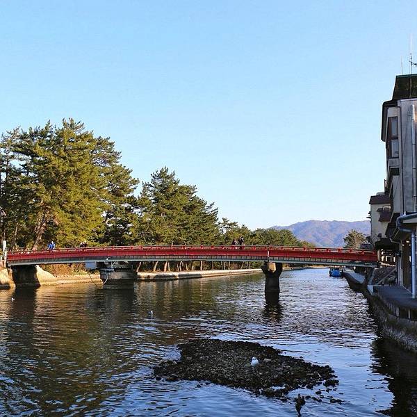 【体验】这个约3.5km的大堤坝上面遍布各种各样的松树,有点像海上的绿色大桥,桥上比预想的还要宽,有沙滩风景。这里可以步行观光,我个人更推荐用自行车骑行,每小时约12元租车费,可以在天桥骑行哦。乘坐轮渡也是不错的方式,船票约50元出头也不贵。我来观赏后觉得景观一般,的确是日本三景之一,但感觉有些单一,不好支撑,大家可以参考下我的照片,想深度游京都的话,可以考虑花半天时间来。这是专门到过来拍的照片,其实照片扭转180度也是一样的效果。这个就是“天桥立”的含义。类似咱们中国倒过来的福字。 展开