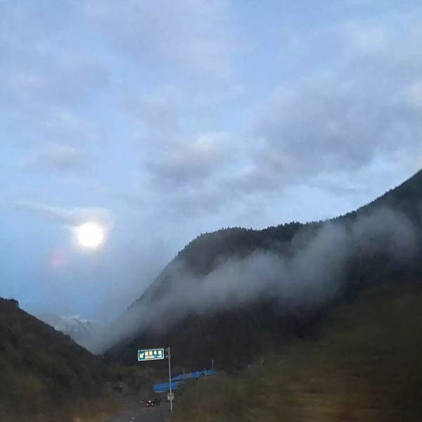 路上看到一台被撞残的车子,两边安全气囊都弹开了,估计还是凶。天黑路险,还是个月圆之夜。我们要慢一点