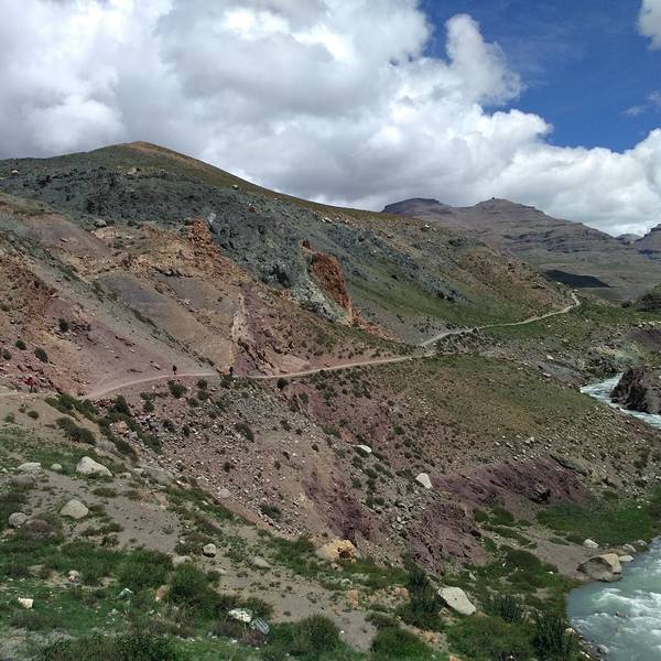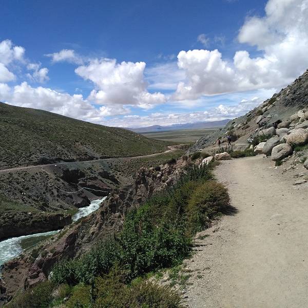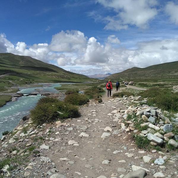 转弯口的路,是很陡峭的一片悬崖路段,往下看,还是十分震撼的。“因为山就在那里啊”早起,把剩下的二十多公里走完,天气不错,毕竟昨日繁星漫天。昨天走的脚疼的很,过了一段水毁路段,早上似乎走的人不多,安静的很,我和朋友一路上畅谈人生。前面那个远远的谷口转过去似乎就是塔尔钦了,这时人...早起,把剩下的二十多公里走完,天气不错,毕竟昨日繁星漫天。昨天走的脚疼的很,过了一段水毁路段,早上似乎走的人不多,安静的很,我和朋友一路上畅谈人生。前面那个远远的谷口转过去似乎就是塔尔钦了,这时人也多了起来,天气放晴。看不见冈仁波齐,越走越感觉这边的景貌变得柔和起来了。转弯口的路,是很陡峭的一片悬崖路段,往下看,还是十分震撼的。中午的样子,总算回到了塔尔钦!那怪每一个转山的人,此时都会高呼:塔尔钦!吃过中饭,稍作修整,前往下一站霍尔乡。