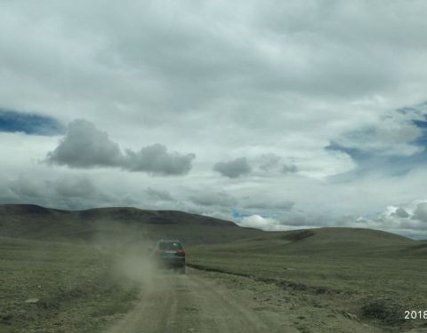 塔尔钦村路口(K1304)-巴嘎(K1343 普兰县路口)-霍尔乡(K1384),里程:46km远处,回头,冈仁波齐又清晰起来,往前去快要看不见它了,现在想起来,为什么要去转山呢。