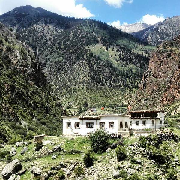 金骆驼 挺特别的,山半山腰还种着许多的青稞,而且拉乌山的空气挺好的,是个天然氧吧,完全不用担心有高原反...觉巴山不高,也就三千多米,但是确是除了通麦天险第二个让人觉得手心都发凉的地方,觉巴山有三十多公里的盘山路需要驾驶,之前没了解,决定自驾前往,到了之后才发现,这可能是西藏之行非常错误的一个决定,刚到...觉巴山不高,也就三千多米,但是确是除了通麦天险第二个让人觉得手心都发凉的地方,觉巴山有三十多公里的盘山路需要驾驶,之前没了解,决定自驾前往,到了之后才发现,这可能是西藏之行非常错误的一个决定,刚到山脚下的时候路还是挺平坦好走的,当时一考试盘山就觉得非常恐怖了,刚开的时候就是沿澜沧江边而行,前行几百米后一边是万丈深渊,一边是山,而且道路越来越狭窄,只能小心翼翼的靠山边行走,一丝都不能移开注意力,过了差不多几千米后才能放松一下,而突然又遇到成群的山羊路过,没有办法,这里的山羊为大,只能停下来等待这群山中的精灵走过才能开车,进入到高坡度的时候,是最害怕的,因为只要到了坡度的山路,公路就不太好走,路间歇性颠簸,拐弯的时候甚是可怕,若梢有偏差就命丧西藏了。开到一个较平坦的地方,才能好好的欣赏风景,觉巴山能用肉眼看到的都是一座座的高山,所有大山的外表都被郁郁葱葱的大树和绿色的植被包裹着,但是看起来它们都很年轻,也没有看见什么苍天古树。中间夹着一条澜沧江,谷底澜沧江江水非常浑浊,水势凶猛,据说以前澜沧江的水上非常清澈见底的,可能我们去的时候正好这里下了几天雨,才造成江水很浑浊,在几千米的山上都能听见千丈下澜沧江呼啸而过的江水。站在山顶还能看到俯视觉巴村。
