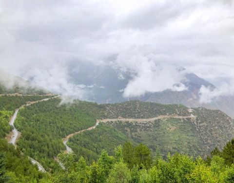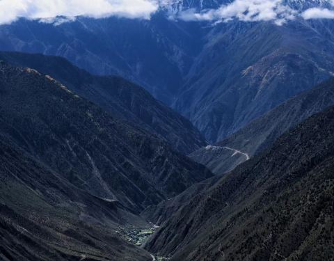 川藏公路30公里的觉巴山盘山路,在西藏芒康县的竹卡村-登巴村,近20...觉巴山(又称脚巴山),在四川西部的巴塘到西藏东部的芒康县和左贡,地处横断山脉的三江流域,被包围在安久拉山、伯舒拉岭、拉乌山等群山中。