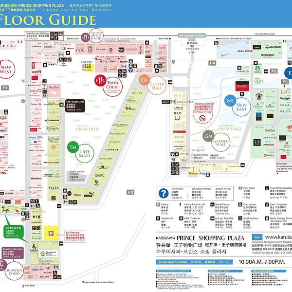 在轻井泽这种风光好气质佳的地方散心观光当然是一件美事,但是看遍了各种花花草草,不免会审美疲劳,那么,就在这么风雅清新的地方造一个硕大的购物广场,岂不是变成了锦上添花的美事。轻井泽王子购物中心就在轻井泽车站的南口,这里有着200多家品牌服饰店(包括Prada,Coach,DKNY,TOD'S等)和百余家餐厅,甚至还囊括了一家高尔夫球场和滑雪场。购物中心分为4个大区,想要逛遍可不是一天能完成的哟。