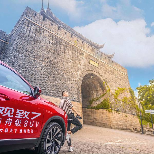 ...,我被眼前的这片风景震撼住了,这座苏南地区唯一腾山而筑的城墙,记录着常熟人一代又一代的年轮岁月自驾第一站是“虞山城墙”, 虞山横卧于常熟城西北,北频长江,南临尚湖,因商周之际江南先祖虞仲(即仲雍)死后葬于此而得名。而虞山城墙则位于虞山东坡,跨山而筑,全场1400米。一早出发,自驾观致7前往虞山城...自驾第一站是“虞山城墙”, 虞山横卧于常熟城西北,北频长江,南临尚湖,因商周之际江南先祖虞仲(即仲雍)死后葬于此而得名。而虞山城墙则位于虞山东坡,跨山而筑,全场1400米。一早出发,自驾观致7前往虞山城墙,方界美学设计的全新观致7 SUV,完美传承了观致MILE系列概念车的设计精髓,呈现出豪华优雅和时尚动感的潮流风格。拥有棱角分明,方显锐意的窗格式直瀑进气格栅,灵感是源于我国古代建筑技艺,继承经典,优化了细节,更显品质感。线条简洁、锐利动感,极富表现力。三颗几何切割式晶钻远光透镜灯头,细节精湛,如同镶嵌钻石般熠熠生辉,呈现视觉的崭新体验。当我们抵达虞山城墙时,我被眼前的这片风景震撼住了,这座苏南地区唯一腾山而筑的城墙,记录着常熟人一代又一代的年轮岁月。城墙,作为历史的文物,随着历史的发展进程,它已经成为一座城市的重要标志。沿着古色古香的台阶缓慢而上,仿佛穿越时空之门。各处的设计都让人觉得内心无比平静,就像这座城墙,静默却厚重。青山绿水,古城巷陌,山水城融为一体,尽显“十里青山半入城”的独特城市景观。触摸古城墙的砖瓦,仰望的是气势恢弘的西城楼阁建筑层峦叠嶂,甚是壮观。