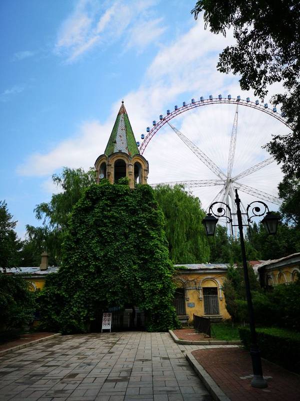 ...息教堂挺拔的钟楼改成的,在高大的摩天轮映衬下,像是日漫里常见的的神秘世界入口,比如《千与千寻》哈尔滨文化公园的侧门是以前安息教堂挺拔的钟楼改成的,在高大的摩天轮映衬下,像是日漫里常见的的神秘世界入口,比如《千与千寻》。