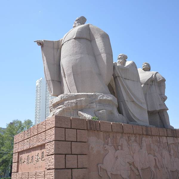 周王城广场,蓝天下,周王城广场的雕像显得格外引人注目,气势雄伟壮观,周公营造洛邑,前面周公在说...周王城广场,蓝天下,周王城广场的雕像显得格外引人注目,气势雄伟壮观,周公营造洛邑,前面周公在说话,后面大臣在听,广场不大,绿化还不错。