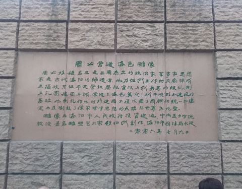 这里主要是个公园,不少人在散步玩耍,非常热闹。公园内有个周公的石像,也不算是什么古迹,但走走无妨从天子驾六博物馆走路到王城广场才200多米,但由于在搞基建,要绕道,结果走了十几分钟。这里主要是个公园,不少人在散步玩耍,非常热闹。公园内有个周公的石像,也不算是什么古迹,但走走无妨。