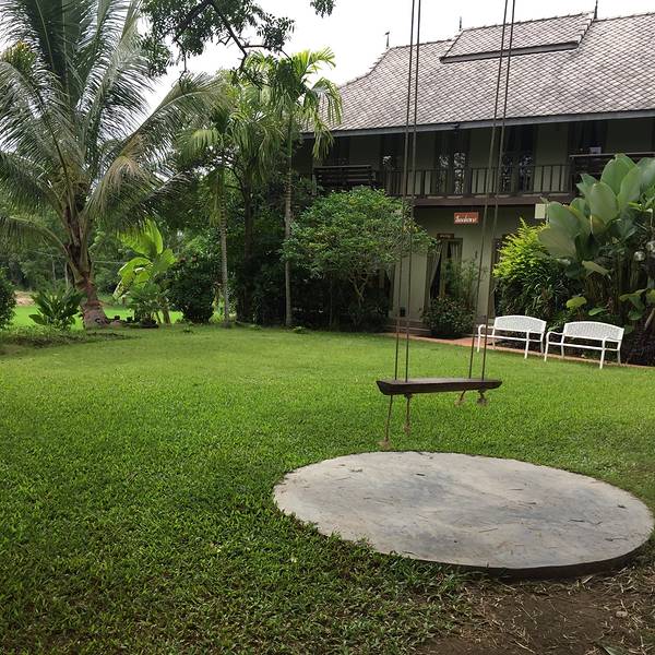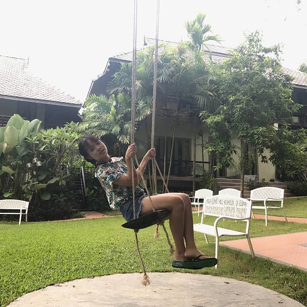 车站下车后,打电话联系酒店的客服接我们过去酒店好漂亮呀,乡村农园的风格,有大树,有秋千,还有我✨
