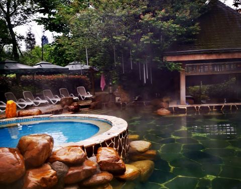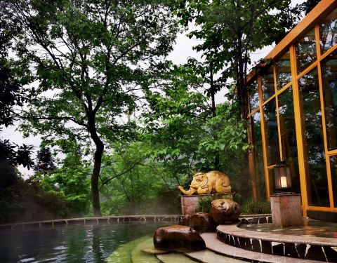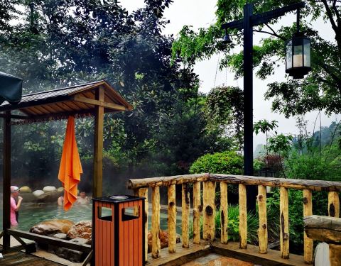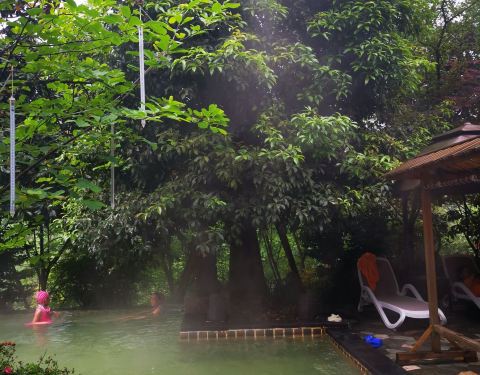 在这树木葱郁空气清新的半山谷中泡着养生温泉,感觉全部身心都得到了沐浴而舒展开来了如果是晚上来泡温泉,还可以欣赏到整个温泉会所在七彩灯光映照下所呈现出的光色迷离,树影婆娑,如梦如幻般的场景。 室外的几个温泉池在珙桐树下次第分布着,云烟笼罩下,蓝色汤池若隐若现。水温有高有低,我们挨...如果是晚上来泡温泉,还可以欣赏到整个温泉会所在七彩灯光映照下所呈现出的光色迷离,树影婆娑,如梦如幻般的场景。 室外的几个温泉池在珙桐树下次第分布着,云烟笼罩下,蓝色汤池若隐若现。水温有高有低,我们挨个的顺着池子泡了过去。在这树木葱郁空气清新的半山谷中泡着养生温泉,感觉全部身心都得到了沐浴而舒展开来了。 展开
