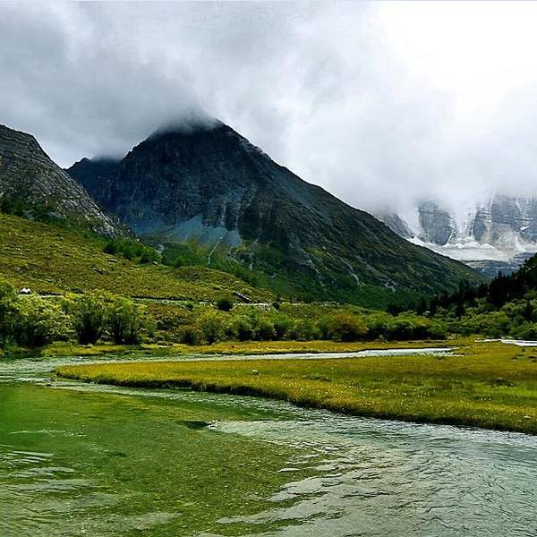 ...稻城亚丁在四川和云南交界处,非常漂亮,秋季的亚丁一片金黄色,冲古草坪在扎灌崩附近,溪水非常清澈